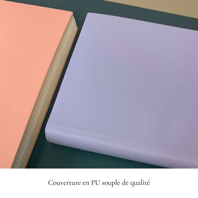 - Couverture souple et colorée : couverture en PU de qualité, doux au toucher et imperméable. Disponible en plusieurs teintes pastel (bleu gris, vert, rose, mauve).