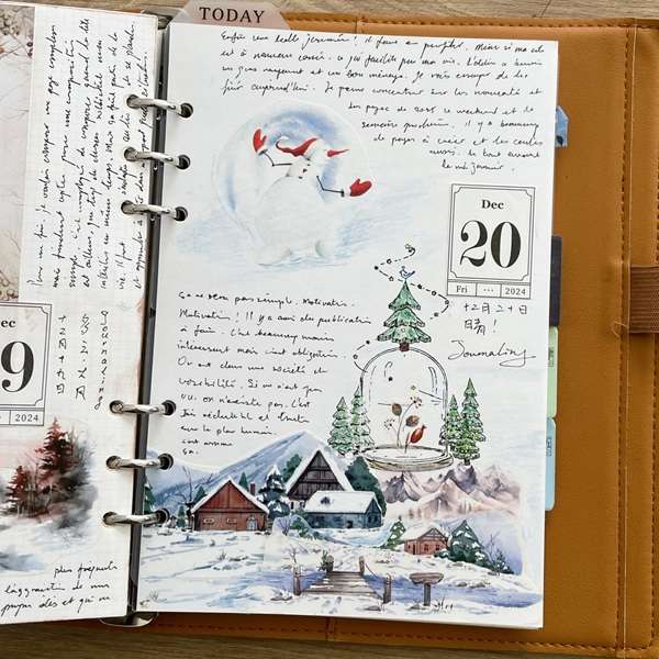 Daily journal hivernal créé avec les masking tapes Scènes de l'hiver et Village de noël et le tempon en bois Forêt étoilée. Support : OCEAN | L’organiseur grand format