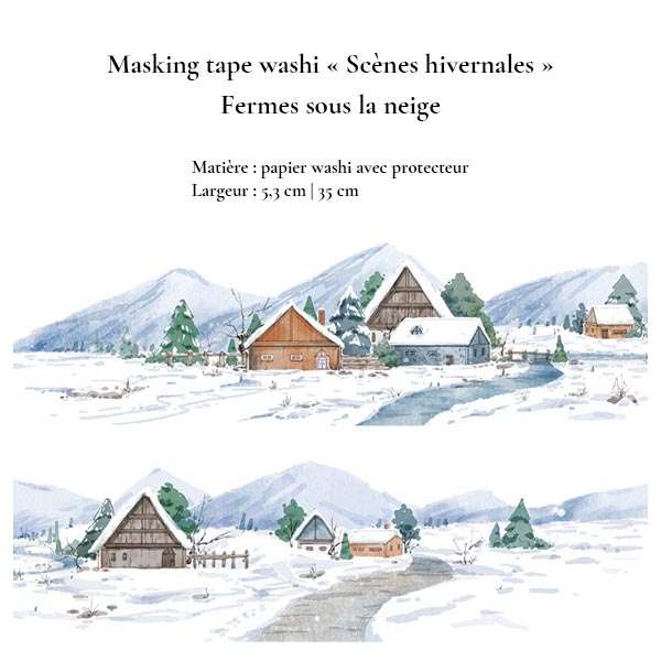 La série Scènes de l’hiver réunit deux masking tapes washi illustrés autour d’un même univers : des paysages hivernaux doux, narratifs et apaisants.