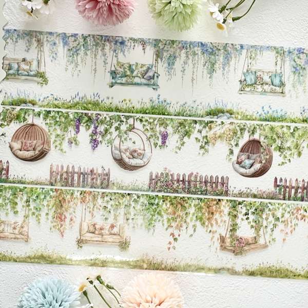 Transformez vos mises en page en véritables œuvres d'art avec la collection "Balançoires dans le Jardin". Conçus pour les passionnées de papeterie créative, ces masking tapes en PET (polyéthylène) offrent une transparence parfaite qui permet aux illustrations de se fondre délicatement dans vos pages, sans bordures blanches visibles. Chaque rouleau propose une promenade thématique à travers des feuillages luxuriants et des coins de repos suspendus.