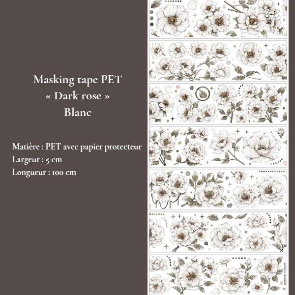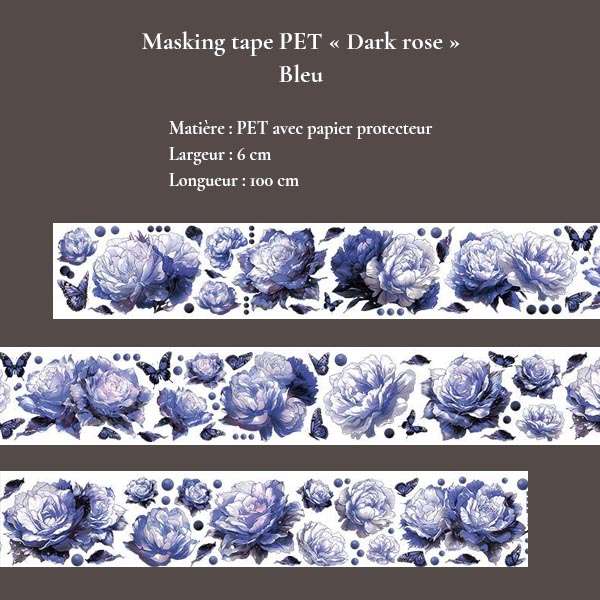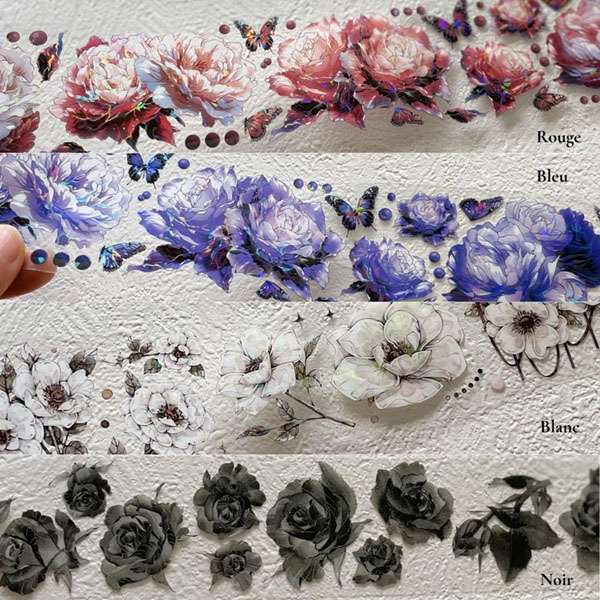 Une collection de masking tapes en PET aux roses sombres et élégantes, déclinée en bleu, rouge, blanc et noir. Parfaits pour le junk journal, bullet journal, collage artistique et créations DIY au style gothique, romantique ou mystérieux.