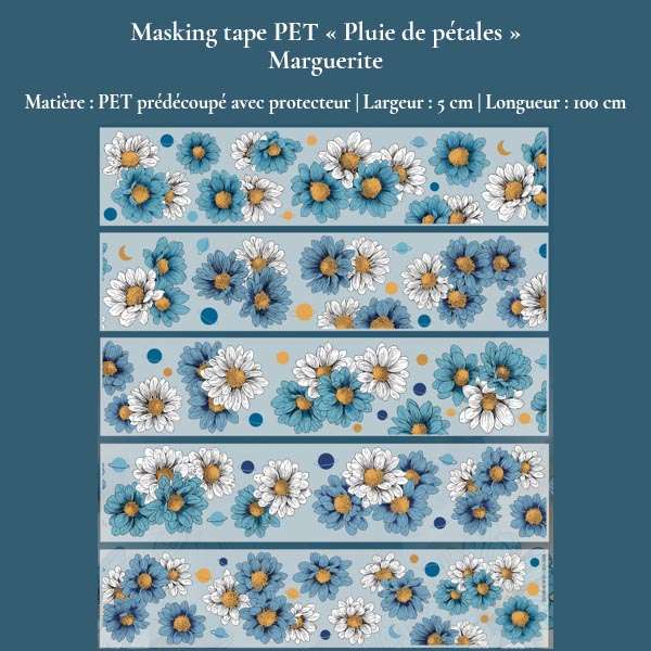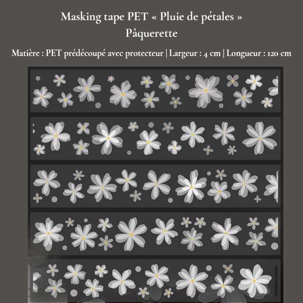 Apportez une touche florale délicate à vos pages avec la collection Pluie de pétales. Ces masking tapes en PET prédécoupé, translucides et faciles à poser, sont idéals pour le bullet journal, scrapbooking, journaling et décoration papier.