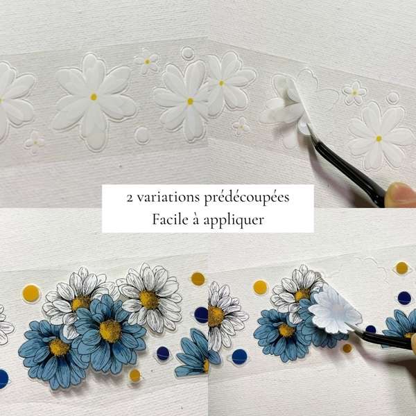 Grâce à leur découpe prédéfinie, chaque fleur peut être utilisée individuellement, sans ciseaux. Ils se repositionnent facilement et permettent de créer des compositions harmonieuses, aussi bien pour structurer une page que pour ajouter un détail décoratif subtil.