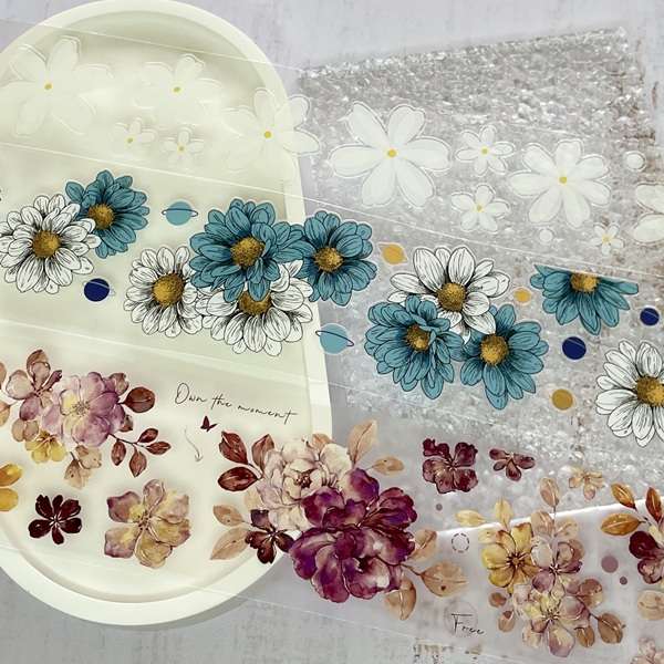 Imprimés sur PET transparent, ces masking tapes offrent un rendu aérien, proche de l’aquarelle, qui se fond parfaitement sur le papier.