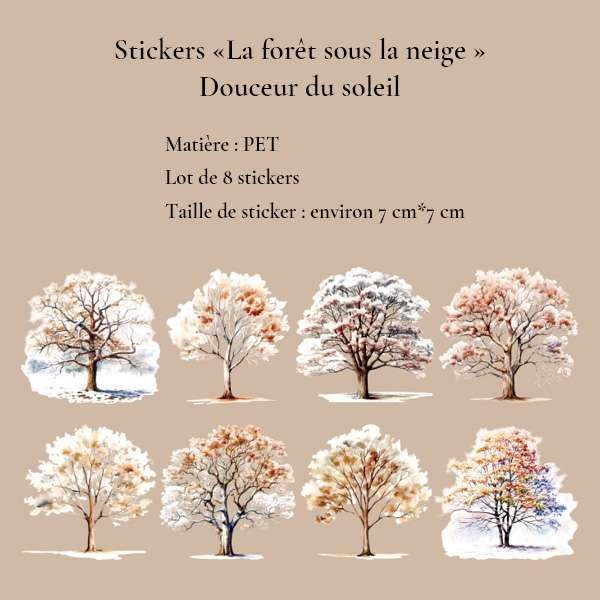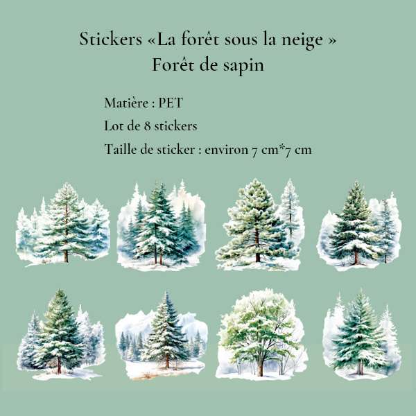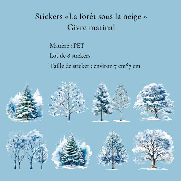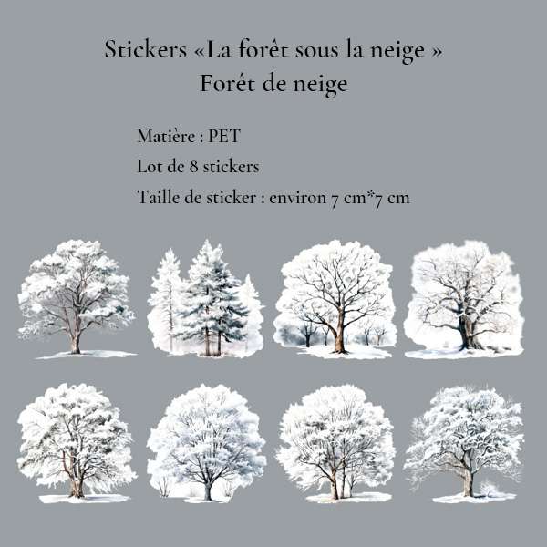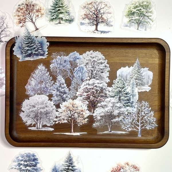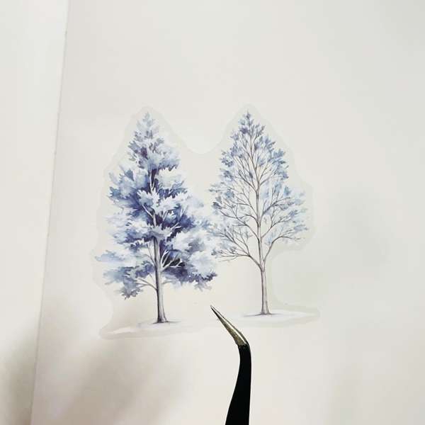 Plongez dans un décor hivernal épuré avec ces stickers représentant des arbres recouverts de neige. Ces illustrations délicates capturent la beauté des arbres en hiver, avec des branches givrées, des sapins enneigés et des feuillus aux teintes douces et féeriques. Ces autocollants sont parfaits pour ajouter une touche naturelle et apaisante à vos pages de journaling, bullet journal, scrapbooking, ou à vos cartes et marque-pages DIY.