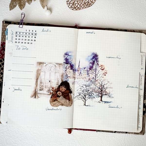 - Pages de bullet journal hivernales.